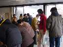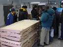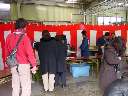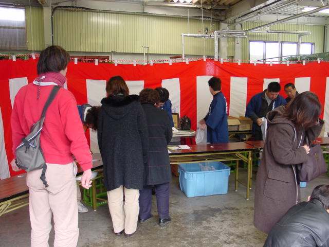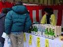 河口湖井出醸造店蔵出し レポート 2月10日(日)河口湖畔の井出醸造店を訪ねました。井出醸造店は唯一地元を 代表する地酒「甲斐の開運」を製造しており、蔵出しは新酒のお披露目イベントなのです。 井出酒造店 [地図] は役場の河口湖寄りにあり、その造り酒屋の歴史を漂わせる 塀に囲まれた佇まいです。 ![]() ![]() 門をくぐり、受付で参加費500円を支払い、猪口、土産を頂き、既に並んでいた 20人程のテントの列に加わる。蔵の造り、建物を見ながら、隣町に、こんなに 趣のある場所があった事を今まで知らなかった事に後悔した。 説明が聞き取れず、良く理解出来ないまま行列に並び、猪口に酒を入れてもらい 出来上がった新酒を口にする。口に含み舌でころがすと、日本酒独特のなんとも甘い 刺激が香りと共に口内に広がった。どうやらココで新酒の味を覚えてもらい、次の コーナーで利き酒をするのだ。 ![]() 蔵に入り階段を上ると通路が待機場所になっていた。10分程待たされて、先に入った お客さんと交替で部屋に入ると、ABCDEと表示された試飲器があり、皆それぞれに 猪口に酒を注ぎ試飲した。渡された用紙のアルファベッドに、先程試飲した酒と同じだと 思う所にしるしを付け、名前を書いて係りの方に提出した。Dだと思ったがCで、外れて しまった。当たったお客様には井出醸造の”スノーマン”500mlがプレゼントとされた。 30人中、7人程の確率だった。通路に出ると40人程並んでおり、知り合いの顔も 見られた。蒸し釜、ビニールで囲み温度管理され、大事に造られている大吟醸など、 普段見る事の出来ない酒造りの仕事場を拝見させて頂きました。 ![]() ![]() 外に出ると「甘さけ・粕汁・つまみ」のサービスがあり、冷えた体に頂いた暖かい 粕汁が、お酒で食欲増進した胃袋に嬉しかった。アンケートを書いて提出すると 酒粕が一掴みもらえた。500円で酒造りのお勉強が出来たり、酔っ払う程に試飲が 出来たり、美味しい粕汁を頂いたり、「開運・本醸造300ml」の土産まで付いてしまう 蔵出しイベントには 「皆さ〜〜ん!来年は・参加しよ〜♪」 |